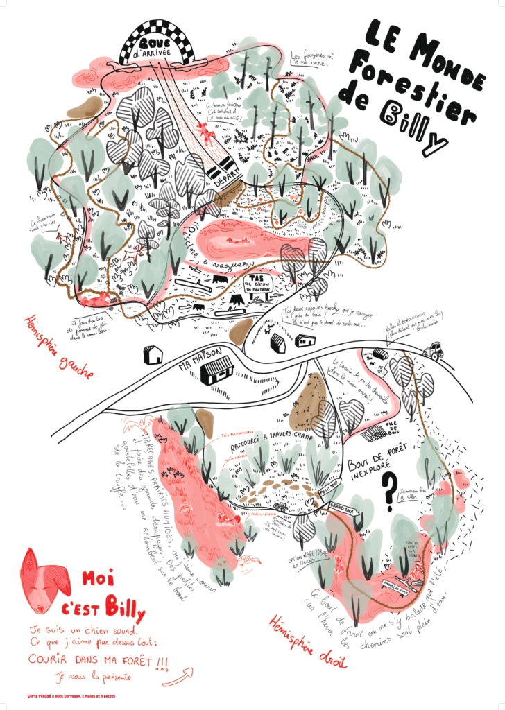 Vous êtes plus de 220 a avoir participé au concours ! Petits et grands, amateurs, cartographes, étudiants, artistes… Chacun d’entre vous à pris le temps de ralentir, de sortir ses crayons et de repenser son rapport personnel à la forêt et à le poser sur une carte. Souvenir d’enfance, odeurs des sous-bois, atlas de la biodiversité, massifs imaginaires ou bosquet du coin, oiseaux, cerfs, chiens et sangliers… Nous avons pris le temps de lire chacun de vos texte et de parcourir vos cartes jusqu’au moindre petit détail, petites fleurs, petits mots. Un grand merci